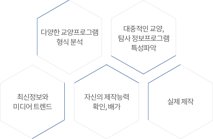 | 강의 주제 | 교양 TV프로그램의 다양한 형식 이해 (탐사보도, 시사, 일반정보, 문화, 다큐 등) |